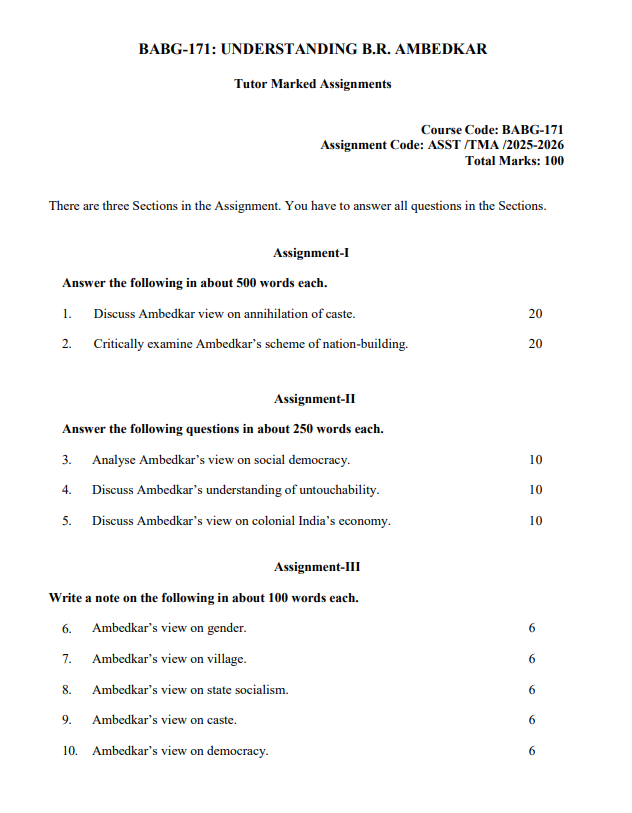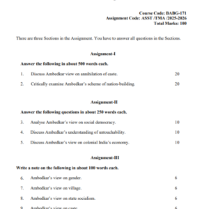 Assignment Title : BABG 171 : B. R. Ambedkar in English Solved Assignment 2025-26