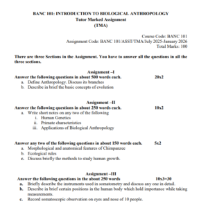 Title : BANC 101 : Introduction to Biological Anthropology Solved Assignment in English 2025-26