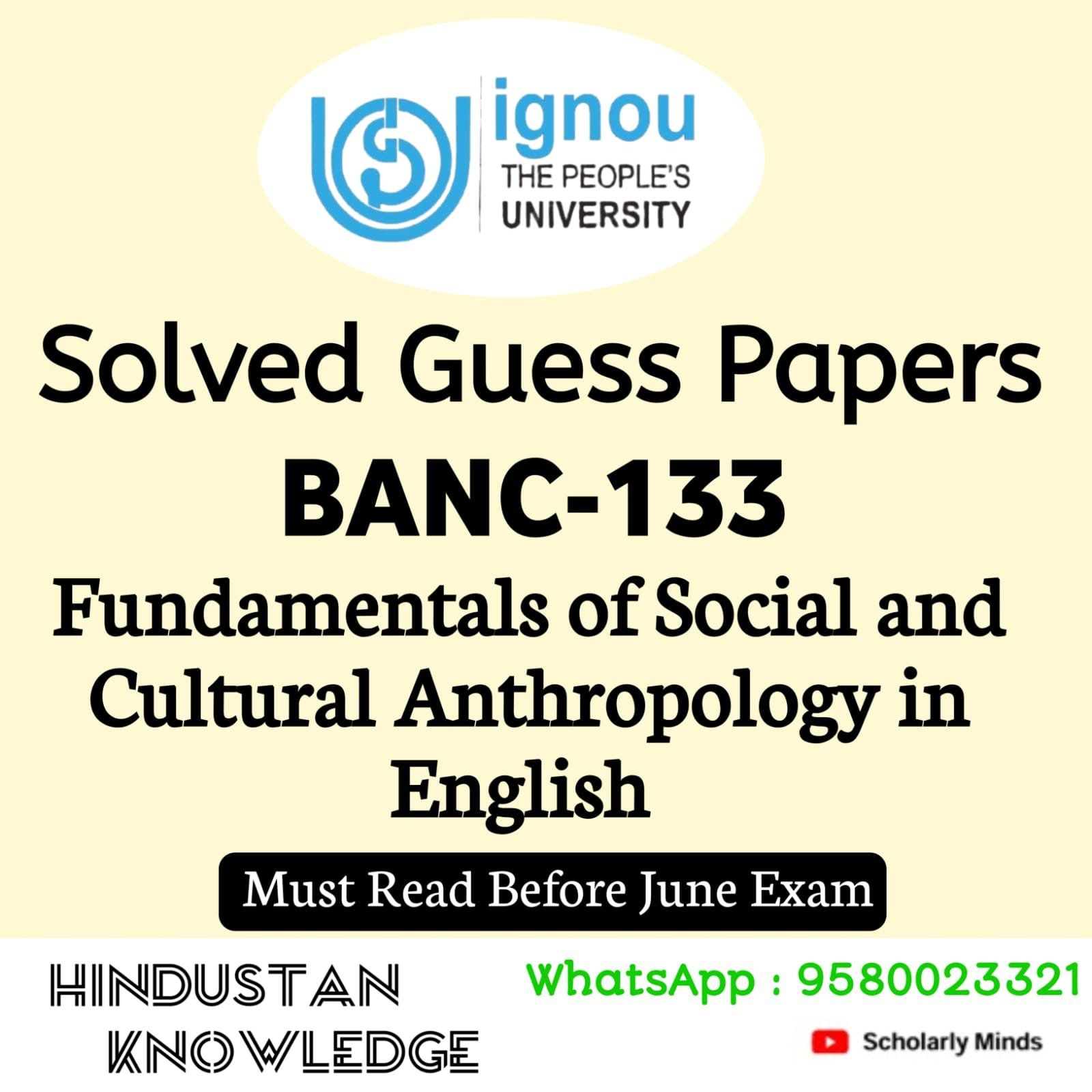 Title : BANC 133 : Fundamentals of Social and Cultural Anthropology Guess Paper June Exam 2025