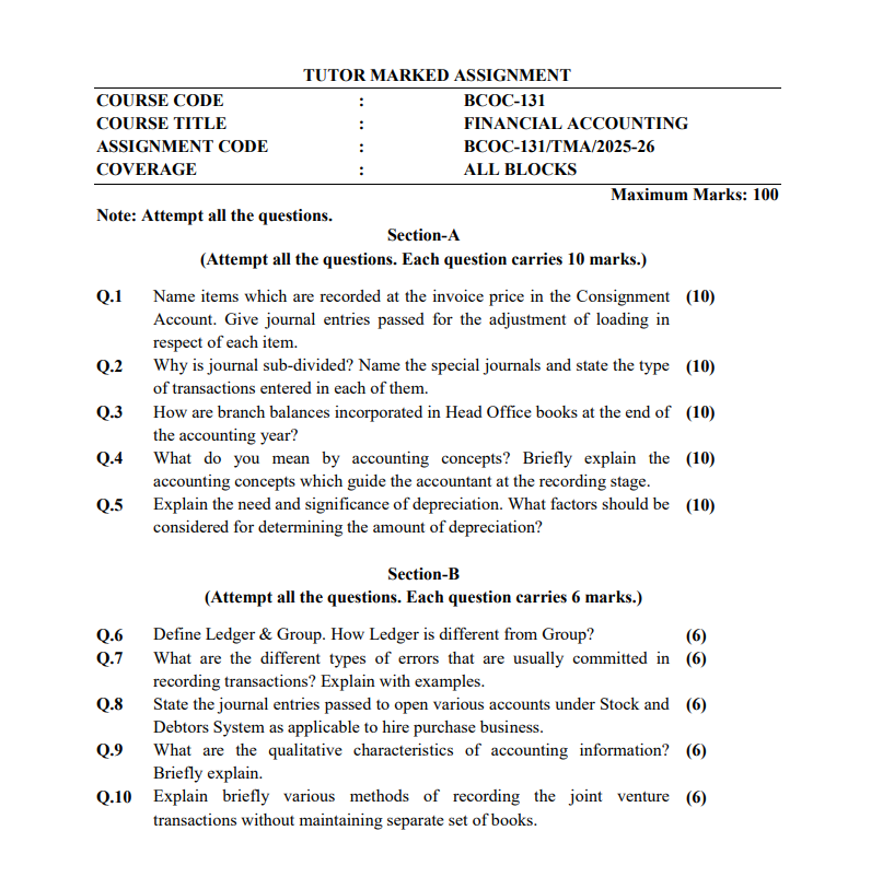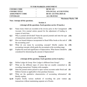 BCOC 131 : Financial Accounting in English Solved Assignment 2025-26