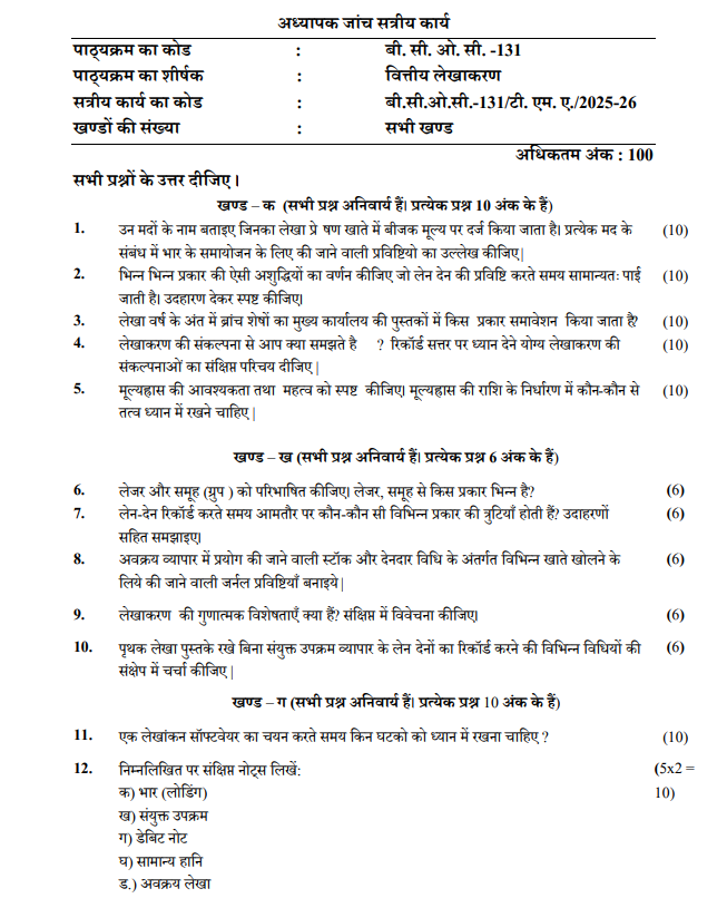 BCOC 131 : वित्तिय लेखाकरण in ...