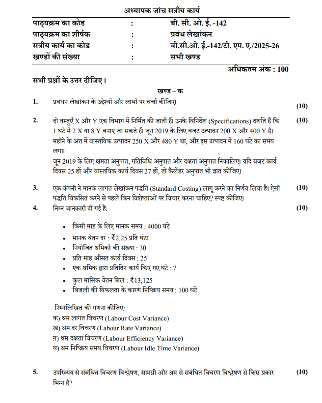 Title : BCOE 142 Solved Assignment in Hindi 2025-26