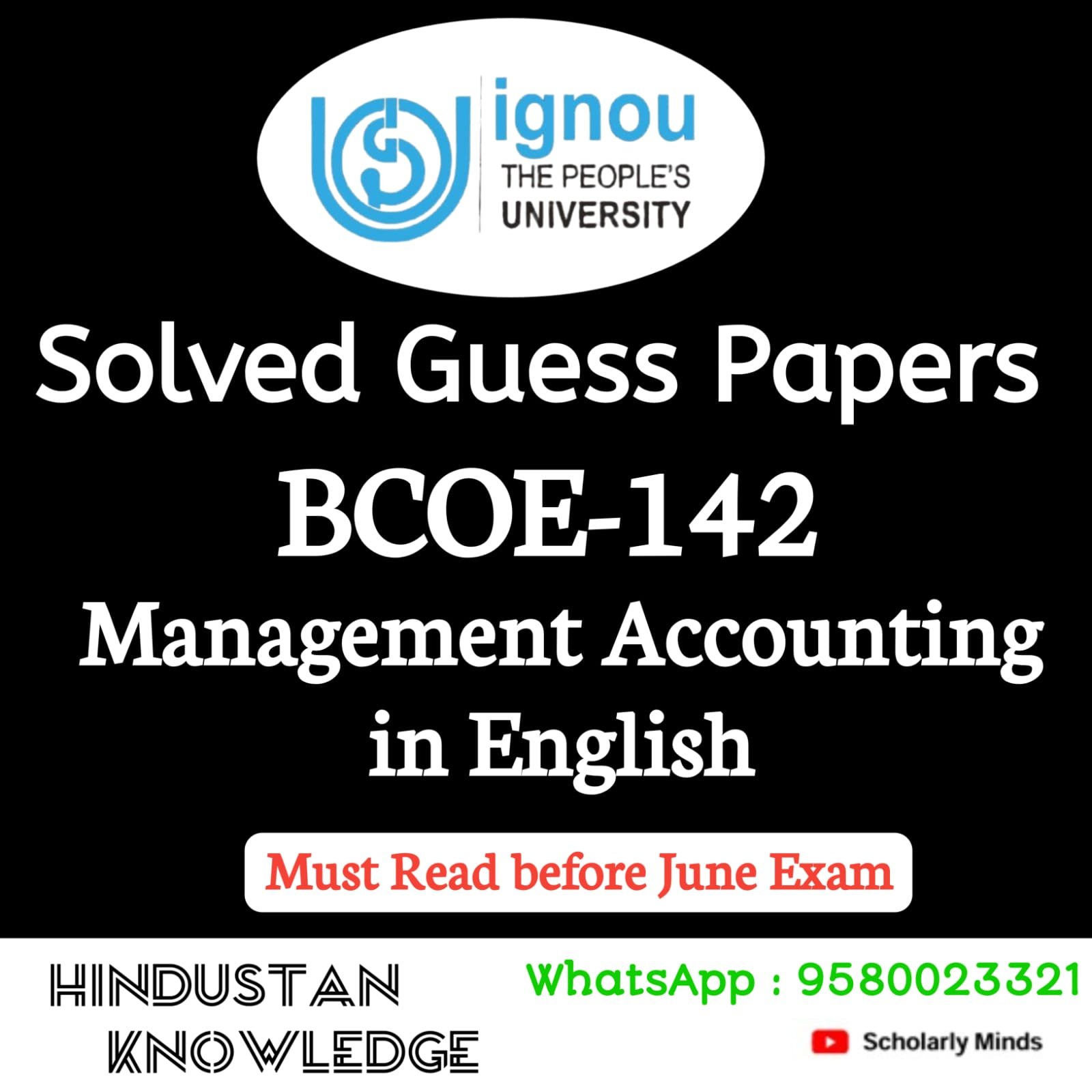BCOE 142 : Management Accounting in English Solved Guess Paper June 2026 Exam