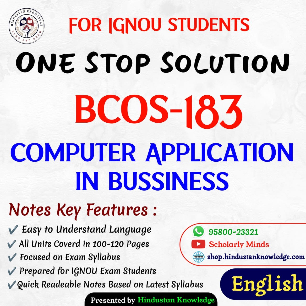 If you are looking for IGNOU BCOS 183 Study Material or Books in English, you’ve come to the right place! This page provides everything you need for the course BCOS-183 : Computer Application in Business, which is part of the IGNOU BCom Bachelor of Commerce (CBCS) program.
