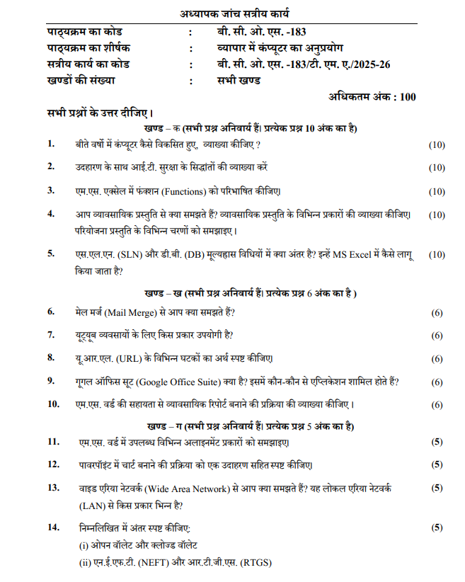 BCOS 183 : व्यापार में कंप्यूटर का अनुप्रयोग Solved Assignment 2025-26