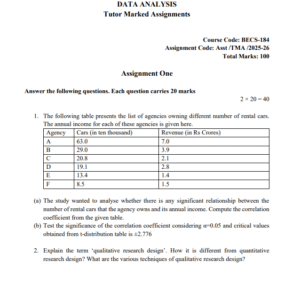 Assignment Code : BECS 184/TMA/2025-26