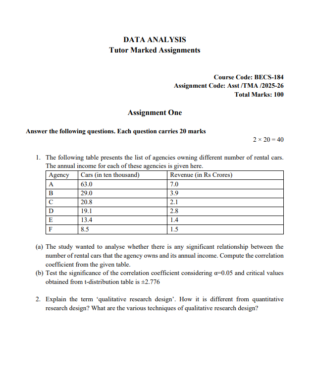 BECS 184 : Data Analysis in English Solved Assignment 2025-26