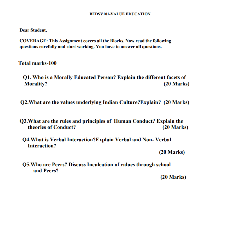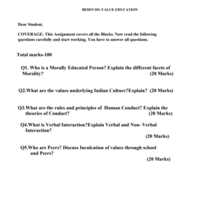 Assignment Title : BEDSV 101 : Value Education in English Solved Assignment 2025-26