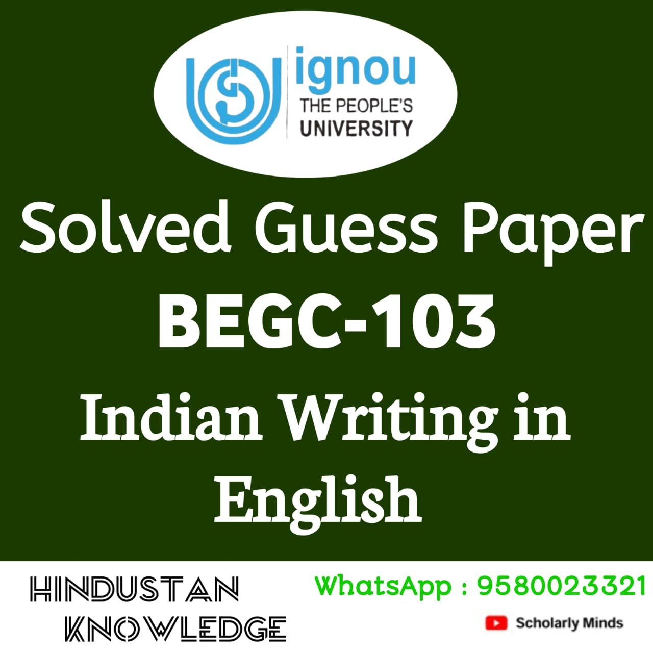 Title : BEGC 103 : Indian Writing in English Guess Paper June Exam 2025
