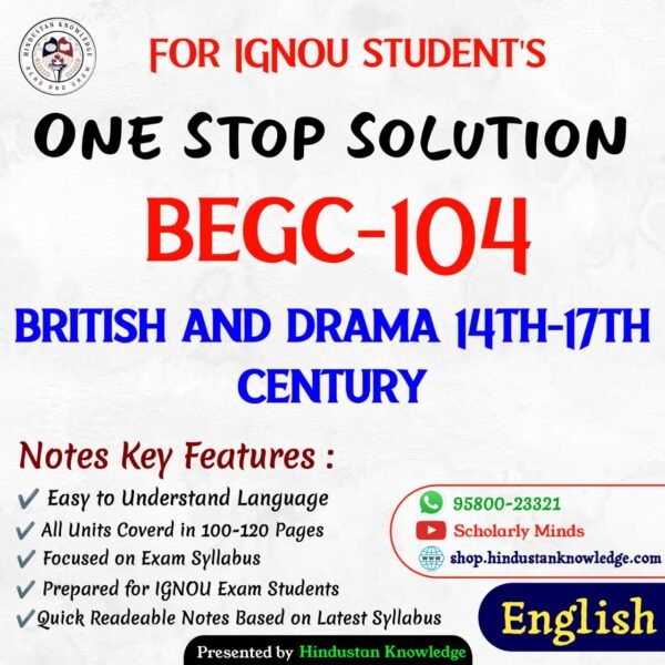 Title : BEGC 104 : British and Drama 14th-17th Century Help Book Study Material for IGNOU Exam