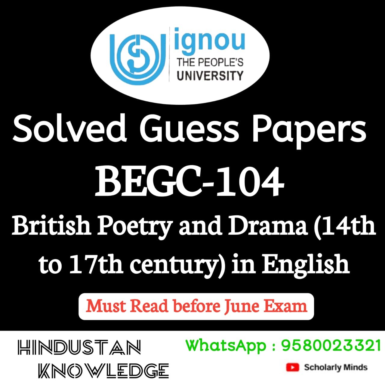 Title : BEGC 104 : British Poetry and Drama (14th to 17th Century) Guess Paper June Exam 2025