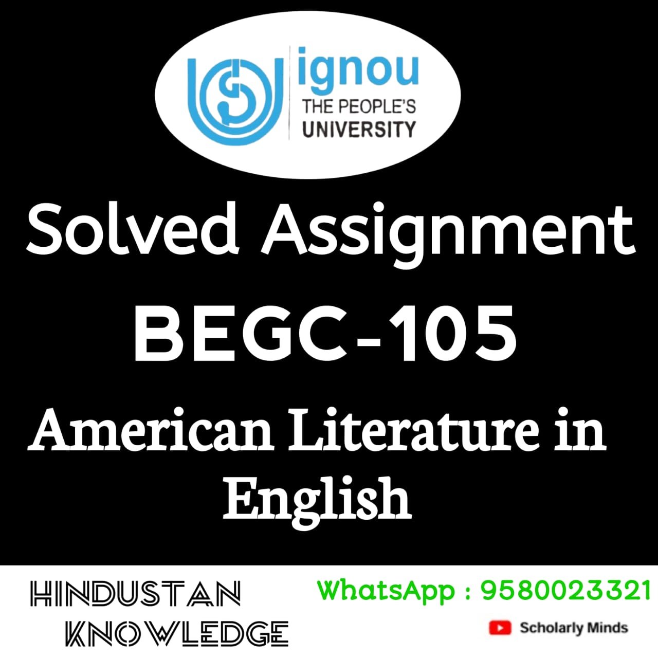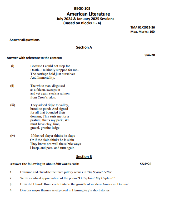 Title : BEGC 105 : American Literature in English Solved Assignment in English 2025-26