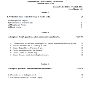 BEGC 107 : British Poetry and Drama :17th and 18th Centuries in English Solved Assignment 2025-26