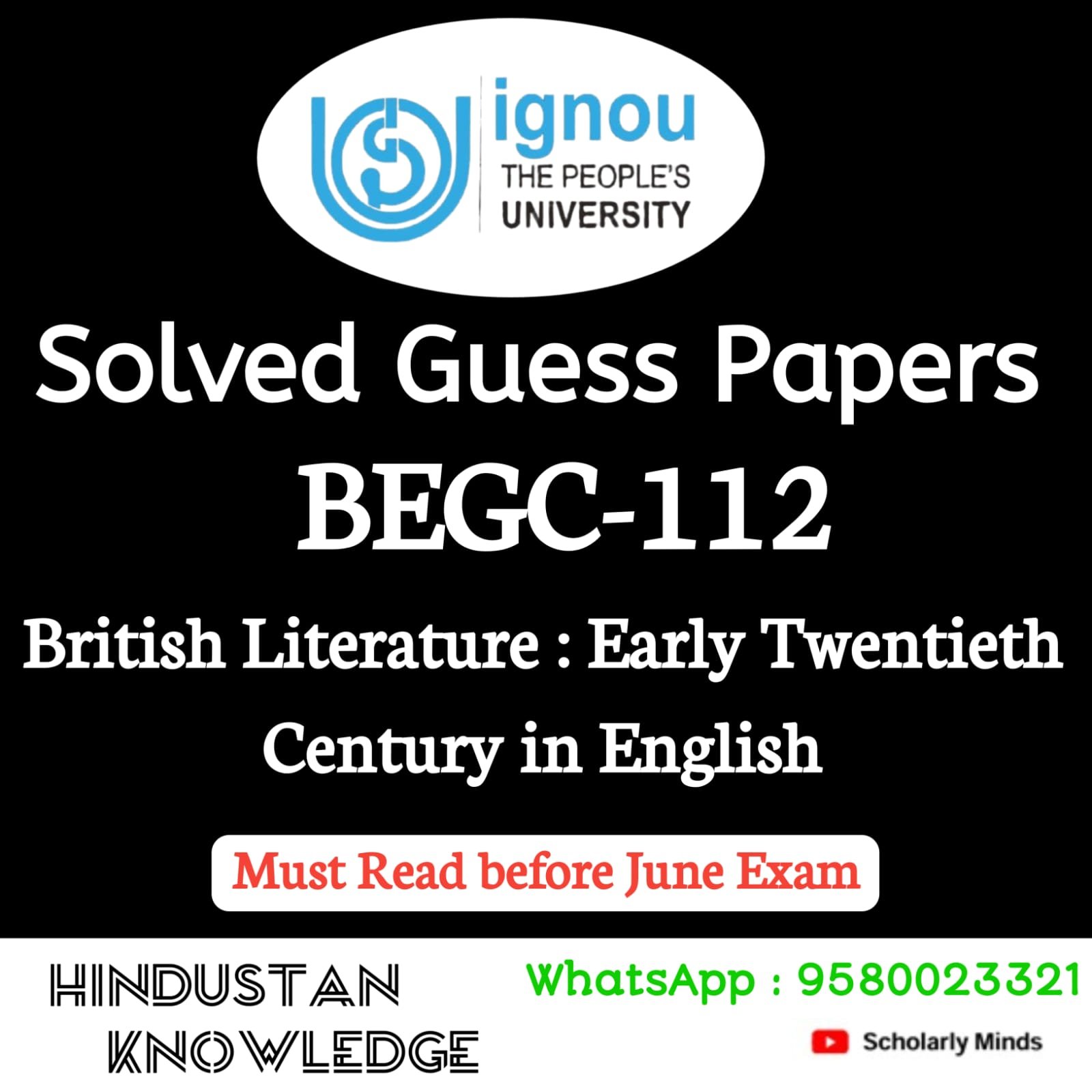 Title : BEGC 112 : Brirtish Literature : Early Twentieth Century Guess Paper June Exam 2025