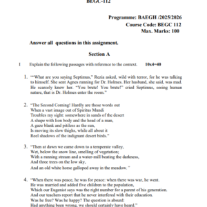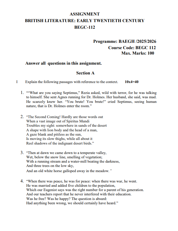 Title : BEGC 112 : British Literature: Early Twentieth Century Solved Assignment in English 2025-26