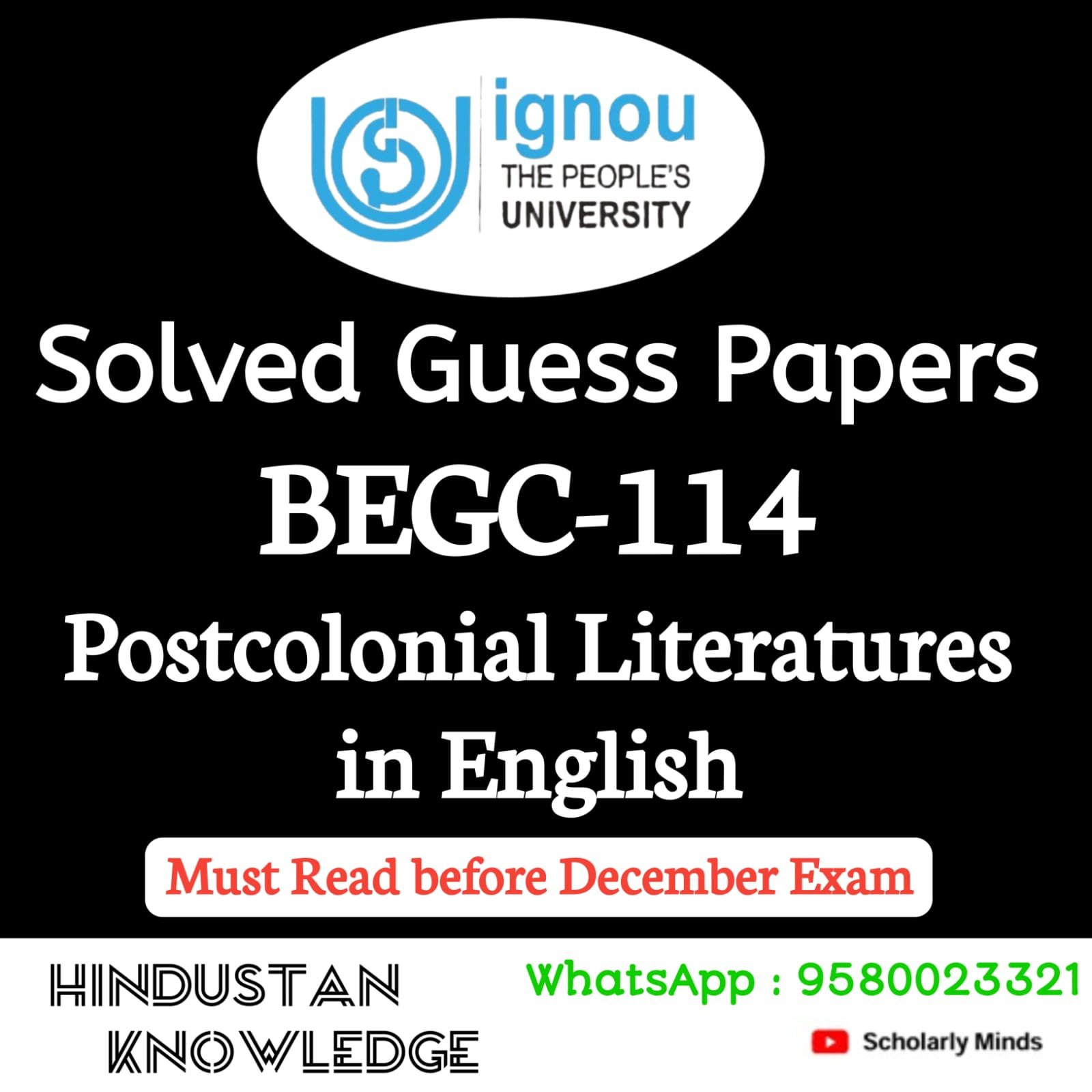 Title : BEGC 114 : Postcolonial Literatures Guess Paper December Exam 2025