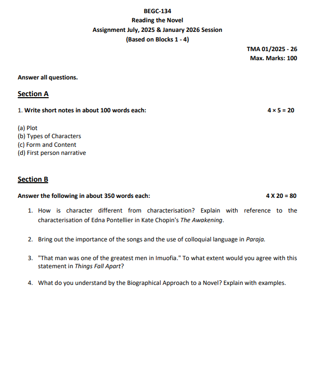 BEGC 134 : Reading the Novel in English Solved Assignment 2025-26