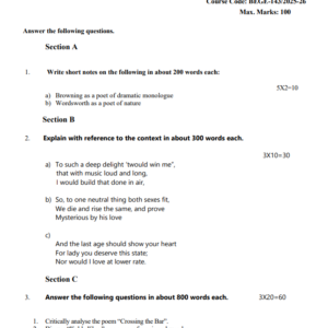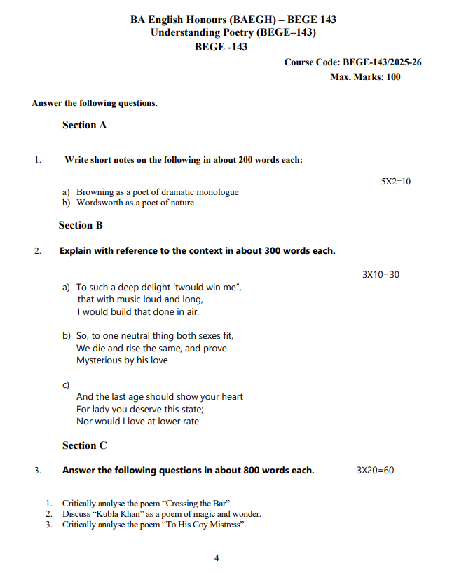 Title : BEGE 143 : Understanding Poetry Solved Assignment in English 2025-26