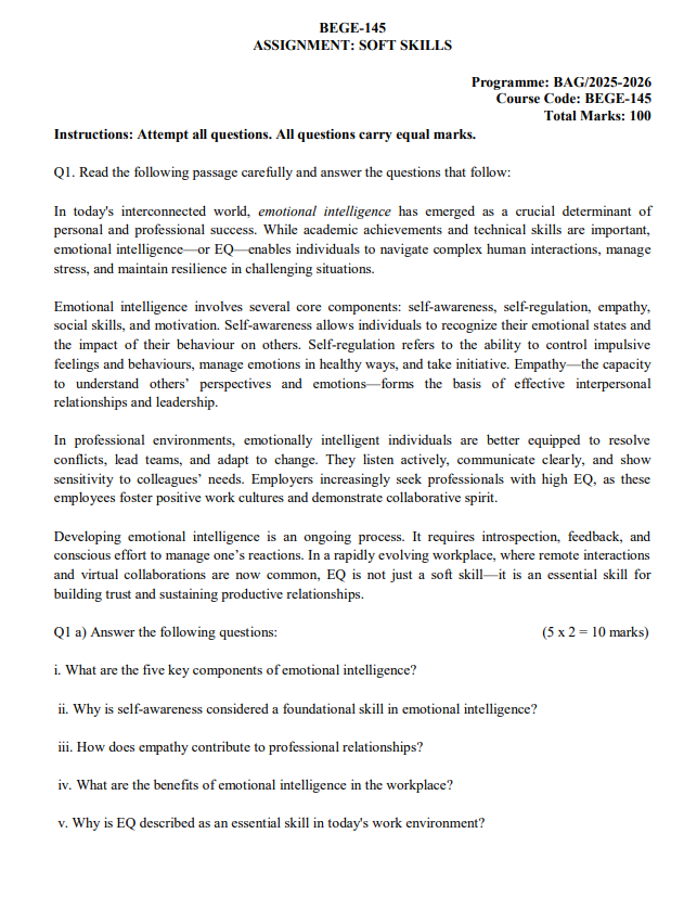 BEGE 145 : Soft Skills in English Solved Assignment 2025-26