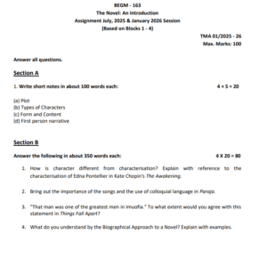 Assignment Title : BEGM 163 : The Novel : An Introduction in English Solved Assignment 2025-26