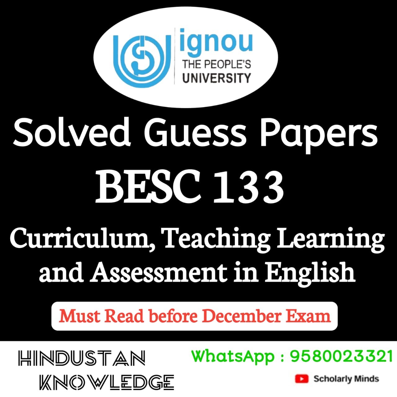 BESC 133 : Curriculum, Teaching-Learning and Assessment in English Guess Paper December 2025 Exam