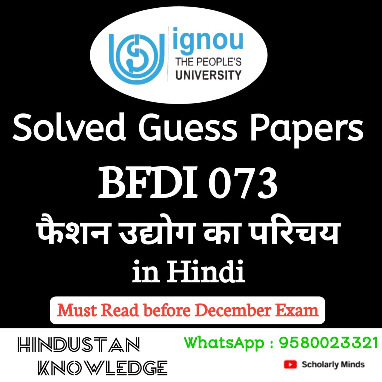 Title : BFDI 073 Solved Guess Paper December 2025 Exam | BFDI 073 Solved Guess Paper in Hindi
