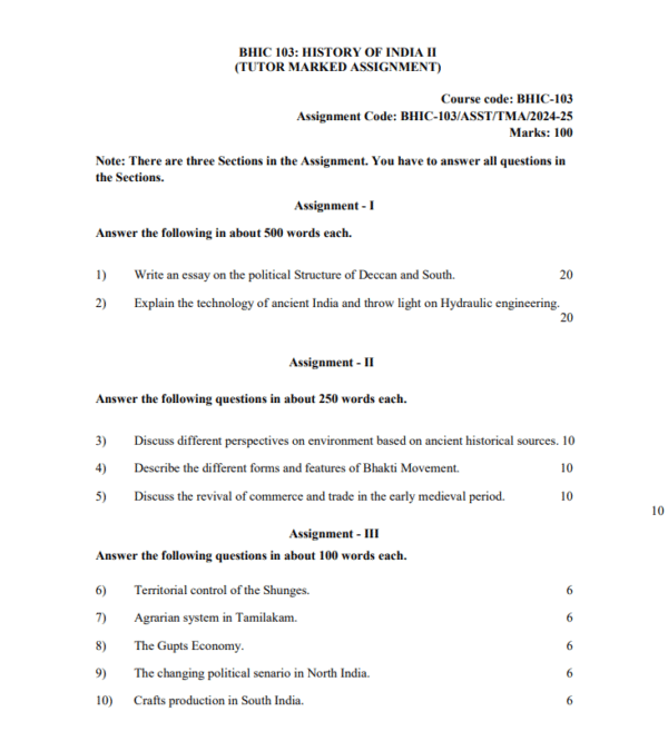 BHIC 103 : History of India –II in English Solved Assignment 2024-25