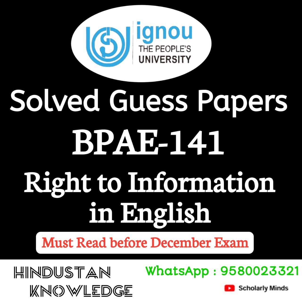 Title : BPAE 141 : Right to Information Guess Paper December Exam 2025