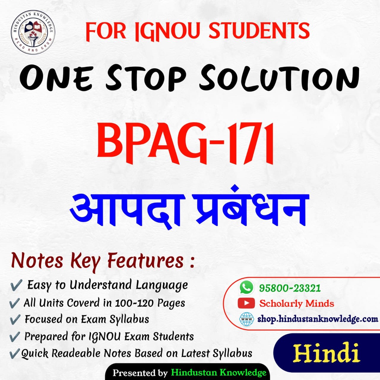 Title : BPAG 171 : आपदा प्रबंधन Help Book Study Material for IGNOU Exam