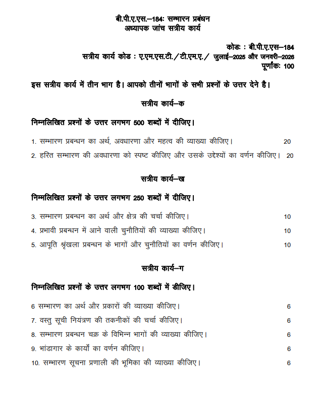 BPAS 184 : संभारण प्रबंधन in Hindi Solved Assignment 2025-26