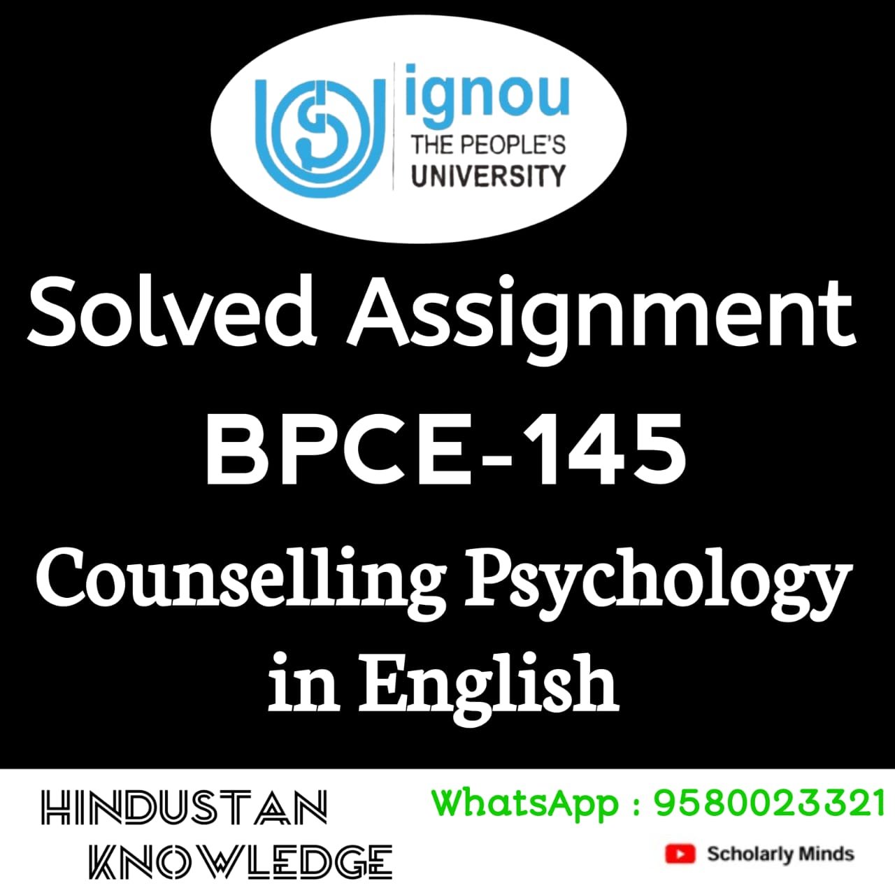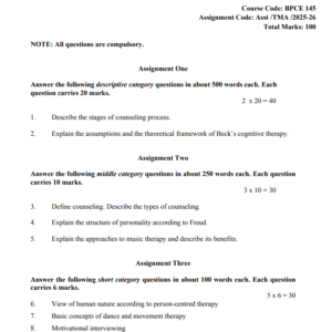 Title : BPCE 145 : Counselling Psychology Solved Assignment in English 2025-26