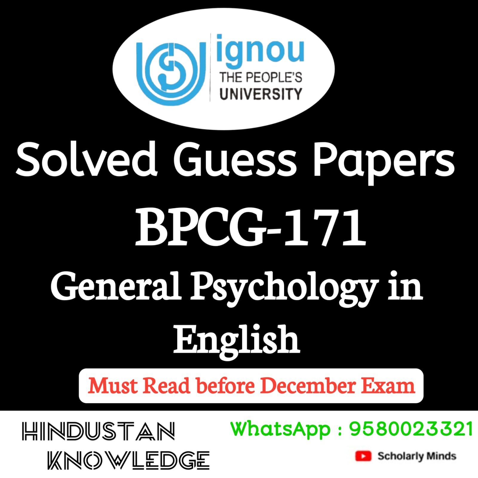 Title : BPCG 171 : General Psychology Guess Paper December Exam 2025