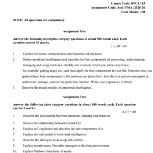 Assignment Title : BPCS 183 : Emotional Intelligence in English Solved Assignment 2025-26