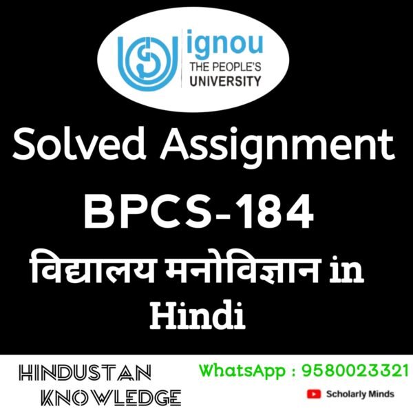 Assignment Title : BPCS 184 विद्यालय मनोविज्ञान Solved Assignment in Hindi