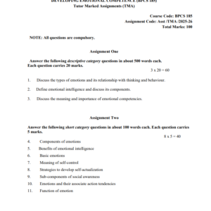 Assignment Title : BPCS 185 : Developing Emotional Competence in English Solved Assignment 2025-26