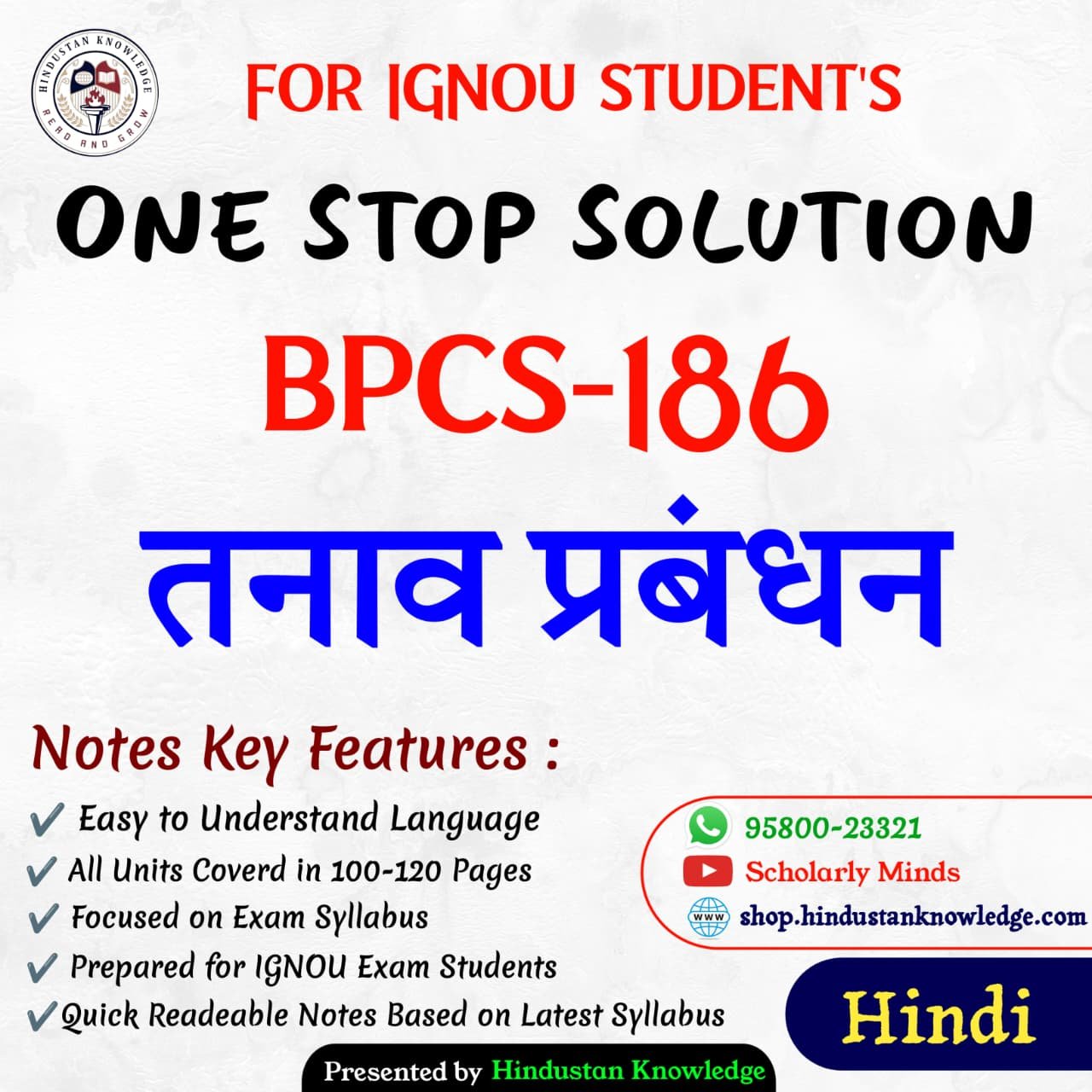 If you are looking for IGNOU BPCS-186 Study Material or Books in Hindi, you’ve come to the right place! This page provides everything you need for the course BPCS-186 : तनाव प्रबंधन, which is part of the IGNOU BA Bachelor of Arts (CBCS) program.