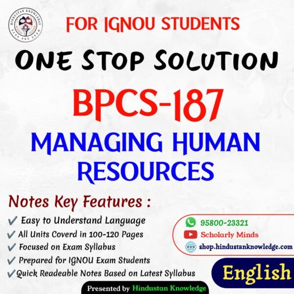 BPCS 187 | Managing Human Resources | Unit Wise Notes (Help Book) For IGNOU Exam