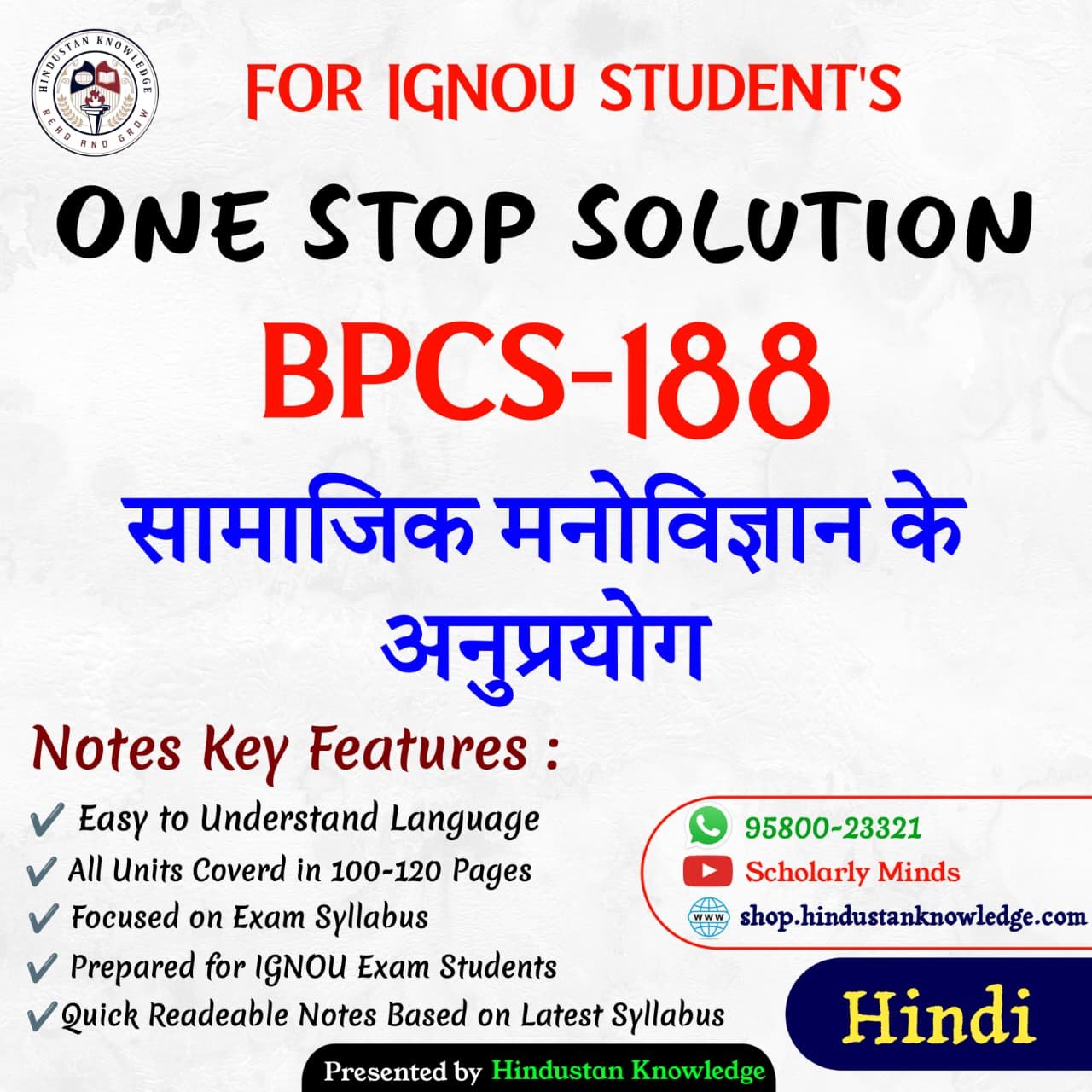 If you are looking for IGNOU BPCS-188 Study Material or Books in Hindi, you’ve come to the right place! This page provides everything you need for the course BPCS-188 : सामाजिक मनोविज्ञान के अनुप्रयोग, which is part of the IGNOU BA Bachelor of Arts (CBCS) program.
