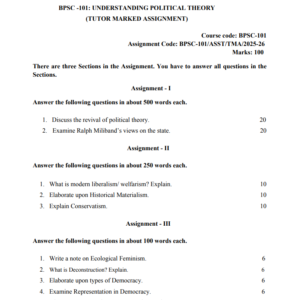 Assignment Title : BPSC 101 : Understanding Political Theory in English Solved Assignment 2025-26