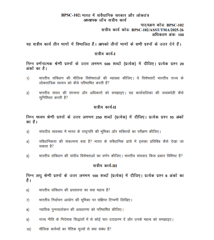 BPSC 102 : संवैधानिक सरकार और भारत में लोकतंत्र in Hindi Solved Assignment 2025-26