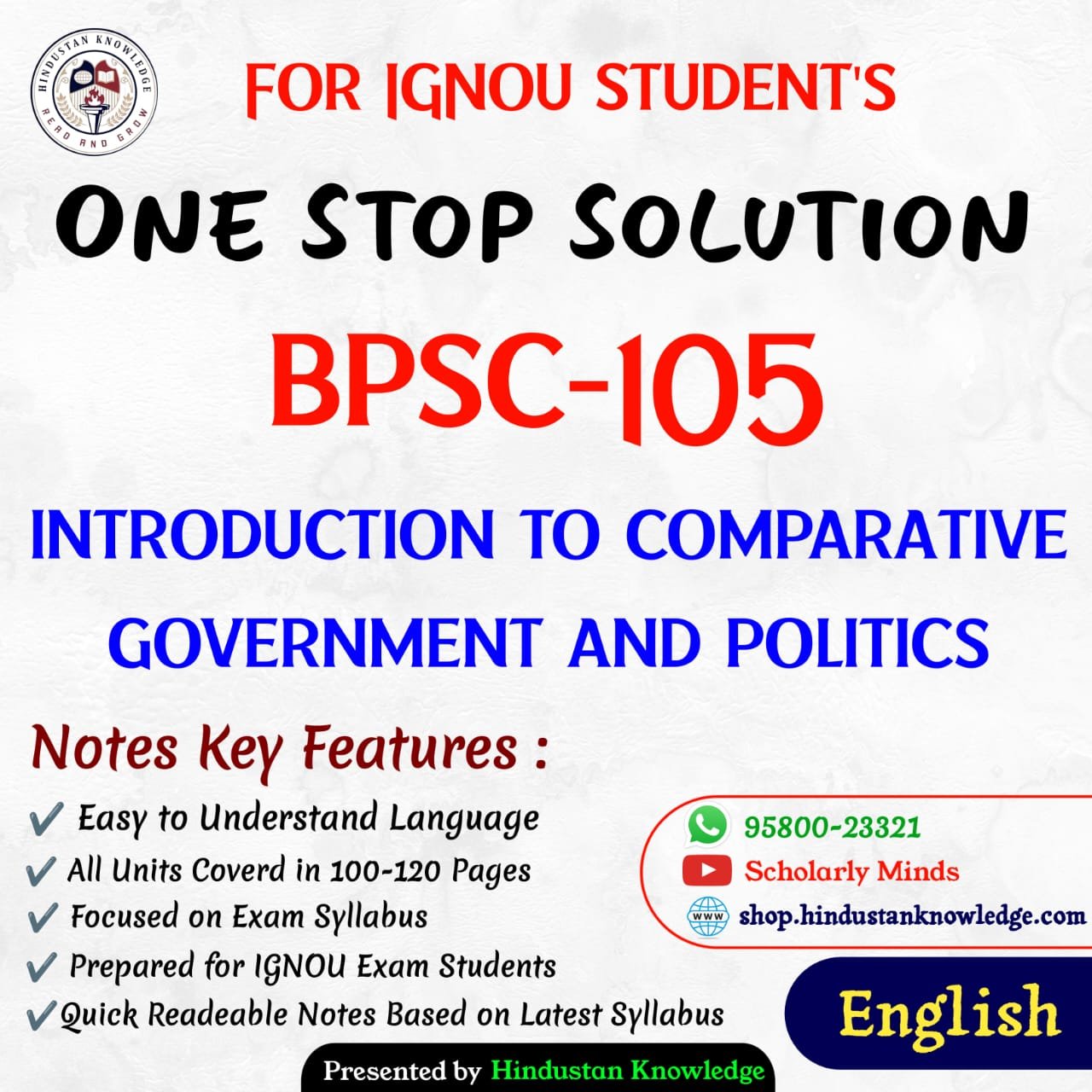 If you are looking for IGNOU BPSC-105 Study Material or Books in English, you’ve come to the right place! This page provides everything you need for the course BPSC-105 : Introduction to Comparative Government and Politics, which is part of the IGNOU BA Bachelor of Arts (CBCS) program.