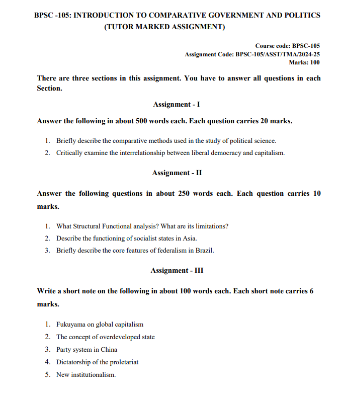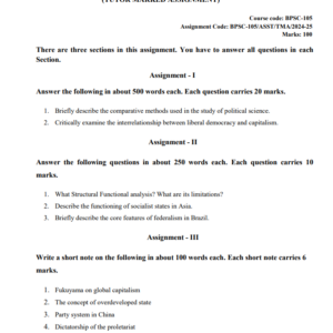 Title : BPSC 105 : Introduction to Comparative Government and Politics Solved Assignment in English 2024-25