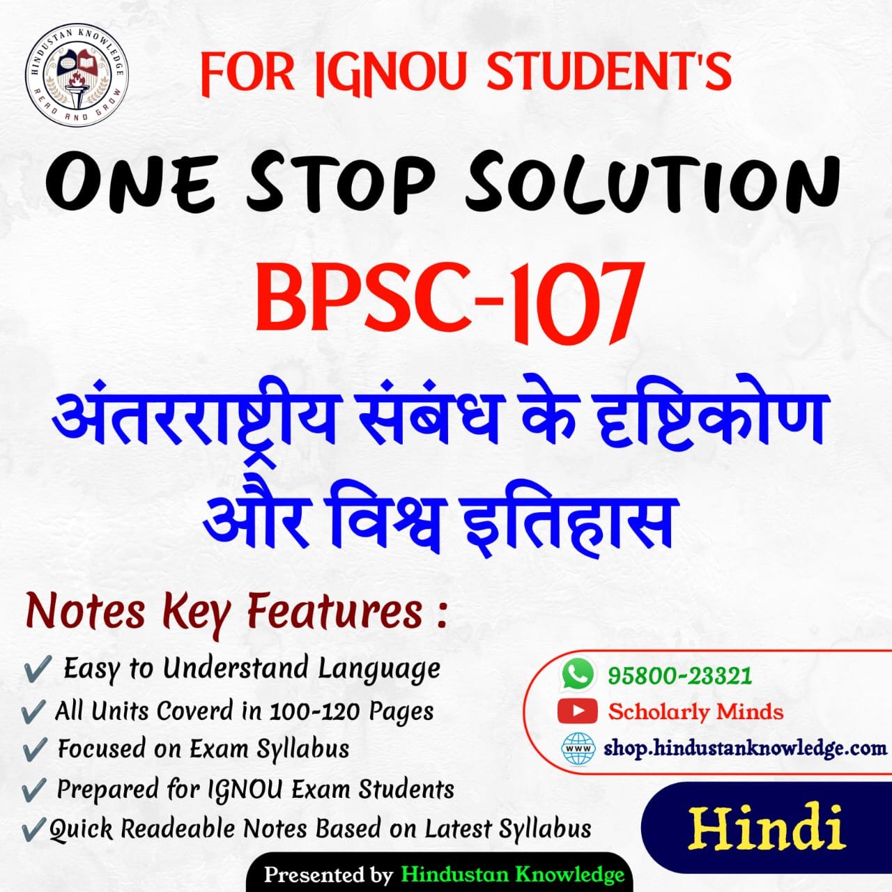 Title : BPSC 107 : अंतर्राष्ट्रीय संबंध के दृष्टिकोण और विश्व इतिहास Help Book Study Material for IGNOU Exam