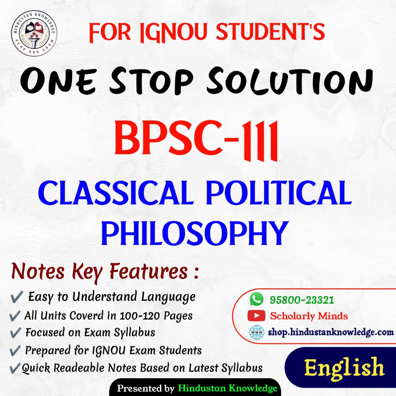 If you are looking for IGNOU BPSC-111 Study Material or Books in English, you’ve come to the right place! This page provides everything you need for the course BPSC-111 : Classical Political Philosophy, which is part of the IGNOU BA Bachelor of Arts (CBCS) program.