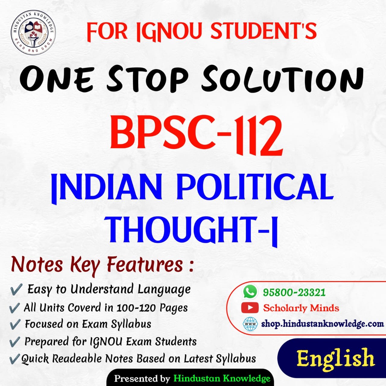 Title : BPSC 112 : Indian Political Thought-I Help Book Study Material for IGNOU Exam
