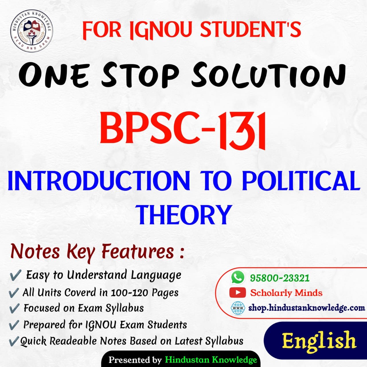 If you are looking for IGNOU BPSC-131 Study Material or Books in English, you’ve come to the right place! This page provides everything you need for the course BPSC-131 : Introduction to Political Theory, which is part of the IGNOU BA Bachelor of Arts (CBCS) program.