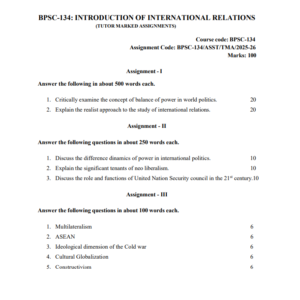 Title : BPSC 134 : Introduction of International Relations Solved Assignment in English 2025-26