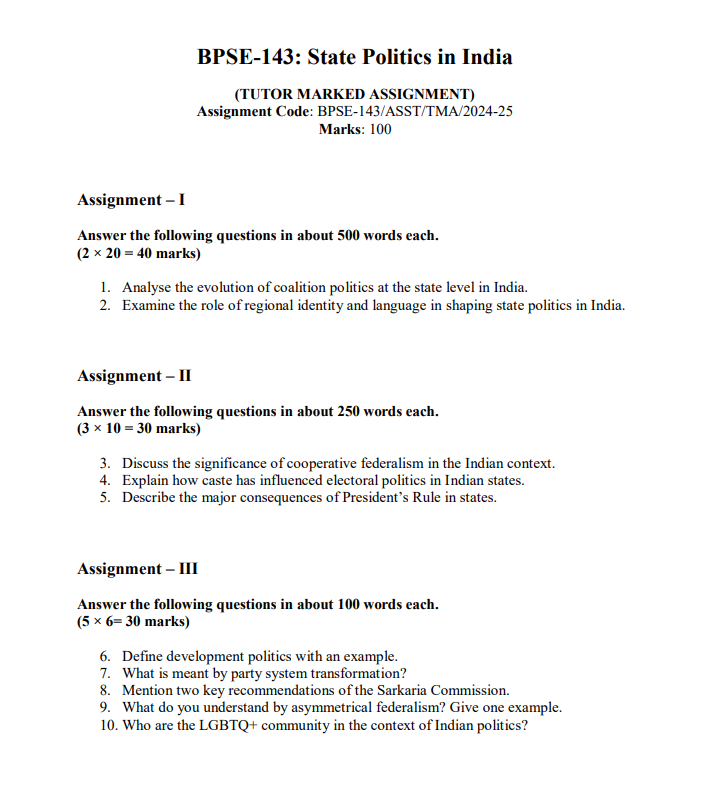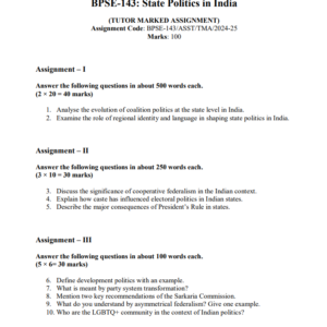 BPSE 143 : State Politics in India in English Solved Assignment 2025-26