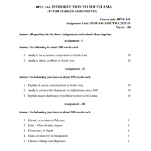 Title : BPSE 144 : Introduction to South Asia Solved Assignment in English 2025-26