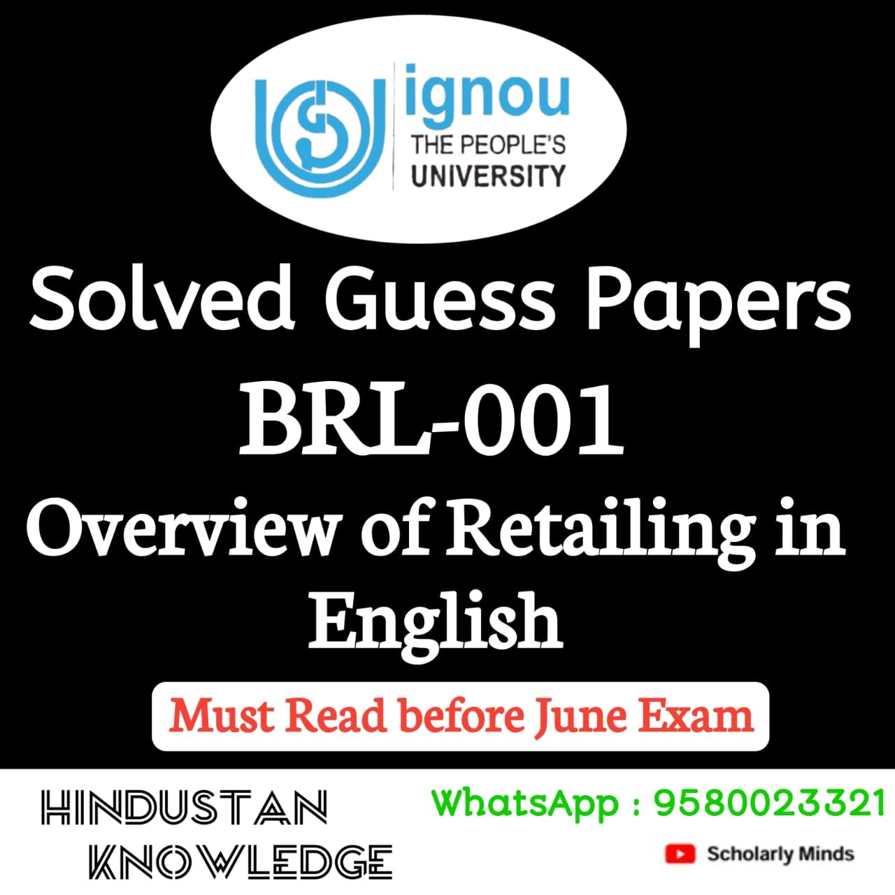 Title : BRL 001 : Overview of Retailing Guess Paper June Exam 2025